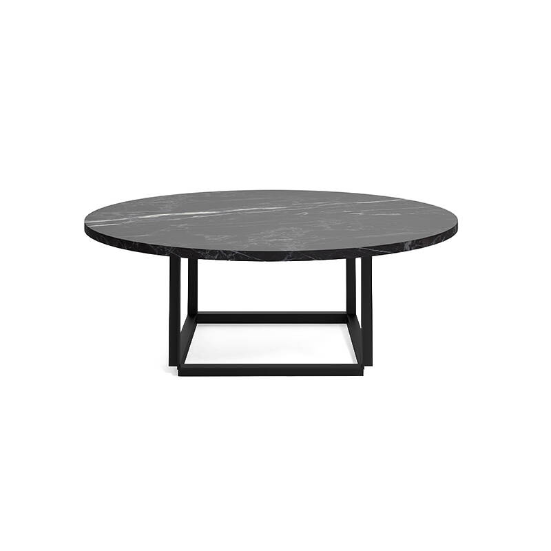 Table basse FLORENCE Ø 90 Marbre Marquina noir/ piètement noir NEW WORKS