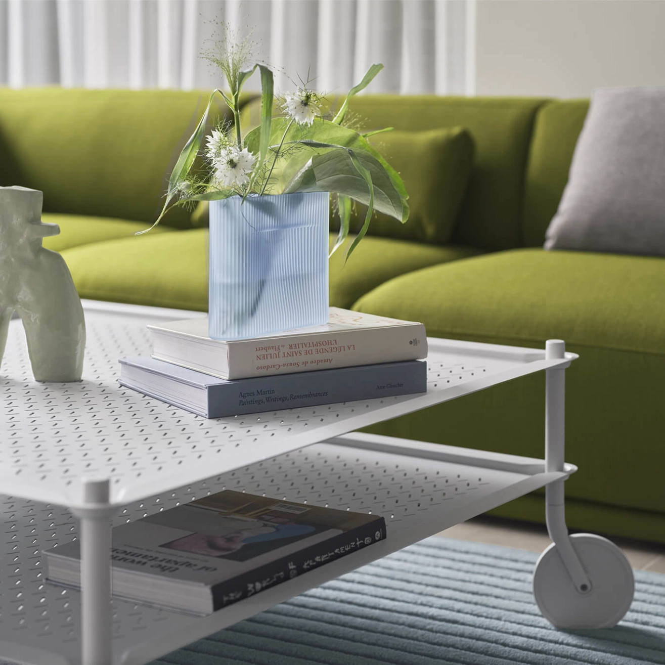 La table basse Flow créée par Normal Studio pour Muuto incarne l’élégance industrielle et le design pratique. Conçue à partir de feuilles de métal moulé, elle offre une structure unique à deux couches et des perforations qui la rendent légère et aérée. La table basse Flow est équipée de roues en caoutchouc et en acier, ce qui lui permet de se déplacer doucement et silencieusement. Polyvalente, elle peut être placer à l’intérieur comme à l’extérieur. Elle propose deux couleurs différentes permettant de l’accorder à tous les intérieurs. Légère et facile à déplacer, il est possible de la repositionner selon les envies et besoins. La table basse Flow de Muuto est donc une table élégante, fonctionnelle et légère, ce qui fait d’elle une pièce indispensable.