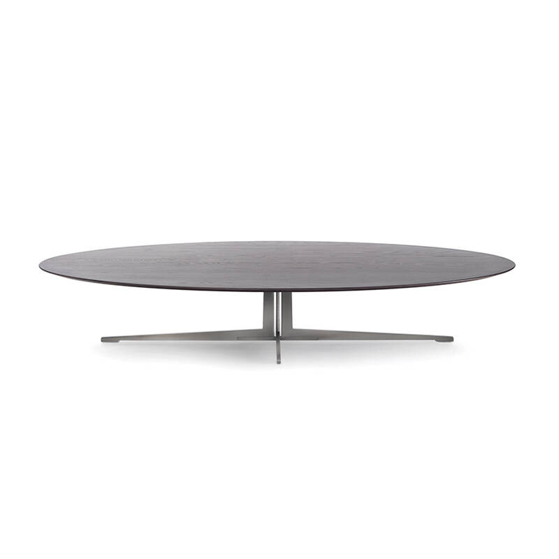 Dessinée par Antonio Citterio pour Flexform, Fly est une grande famille de tables, tables basses et meubles au caractère transversal, expression authentique du « bon design » qui empreint toute la collection Flexform. Les tables basses Fly doivent leur extrême polyvalence à la pureté du dessin alliée à une grande praticité, ainsi qu'à la variété de finitions et de dimensions. Le piètement original des tables basses Fly est en métal disponible en satiné, chromé, bruni, chrome noir ou champagne, tandis que le plateau – rond, ovale ou rectangulaire, dans différentes dimensions – existe en noyer canaletto ou frêne, teintés dans de multiples nuances, ou en diverses variétés de marbre. Contactez-nous pour plus d’informations.