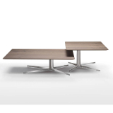 Fly doivent leur extrême polyvalence à la pureté du dessin alliée à une grande praticité, ainsi qu'à la variété de finitions et de dimensions. Le piètement original des tables basses