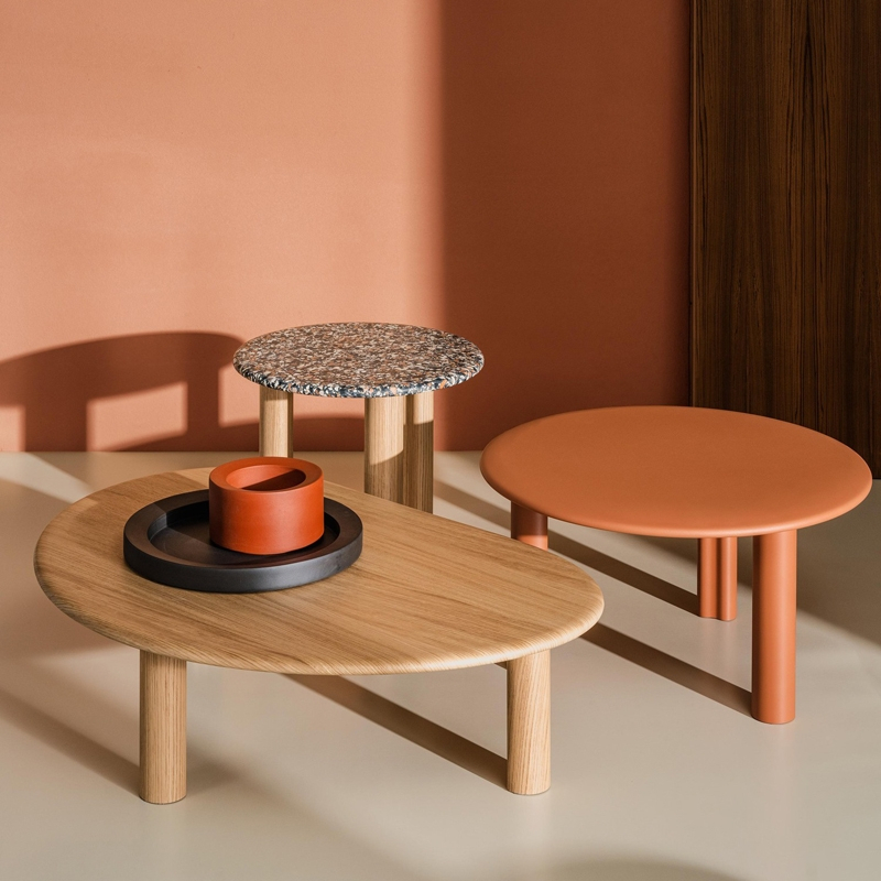 Grâce à son expressivité et ses nombreuses versions disponibles, la collection de tables basses Ghia Arper s'adapte naturellement à tout type d'environnement, des espaces d’accueil aux espaces résidentiels, des zones lounge aux salons. Deux types de piètement, proposés en 3 hauteurs différentes, soutiennent des plateaux de forme ronde ou organique de dimensions variées, disponibles en MDF, bois et terrazzo vénitien. Ghia permet de créer des compositions très personnelles en combinant différents modèles et en mélangeant les couleurs et les finitions. La collection Ghia Arper est certifiée FSC.