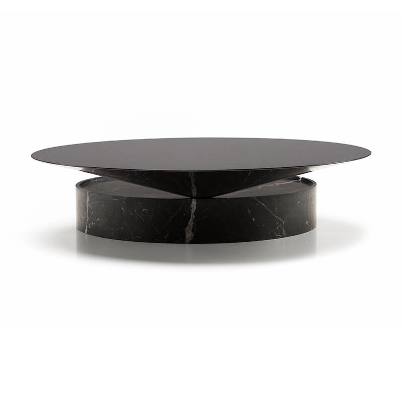 Laurel est une table basse composée de deux formes géométriques entrecroisées, un cône et un cylindre. Le cône HDF peint semble se balancer en apesanteur sur la base cylindrique en marbre. Cette table basse a une forme sculpturale qui complète n'importe quel espace. Laurel est également disponible avec une base en bois, ou comme table d'appoint avec une base en bois ou en marbre.