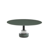 La collection Menhir renvoie sans aucun doute au classicisme grec et aux célèbres monolithes français et britanniques en érigeant une colonne matte – en marbre dans la version d’origine, qui relie l’imposante base en marbre, dite « Rocchio », à son élégant plateau en bois laqué ; ce choix de matériaux provoque un contraste assez saisissant de couleurs et d’éléments, mais aussi un certain effet de stabilité.