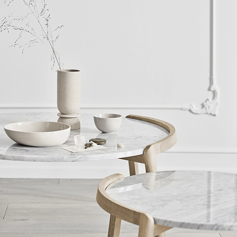 Editée par Bolia, Mix est une série de tables basses élégantes et ludiques qui combine harmonieusement bois et marbre. Chaque design arbore un séduisant mélange de matériaux, ce qui leur donne une expression unique mise en valeur par l'artisanat raffiné et durable qui les caractérise. Disponible en différentes tailles, la table basse Mix Bolia combine élégamment légèreté et puissance artisanale pour former une pièce design à la fois contemporaine et intemporelle. Elle peut être utilisée seule en en composition de plusieurs modèles pour un aménagement créatif et personnel.