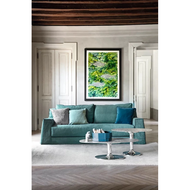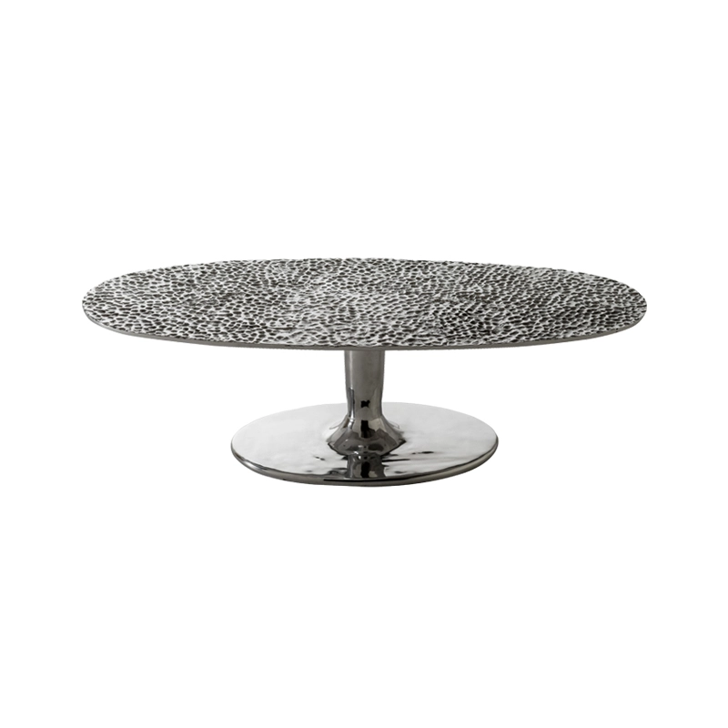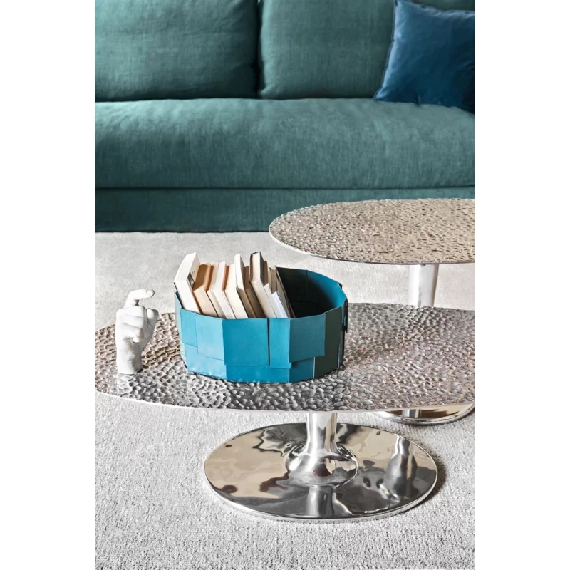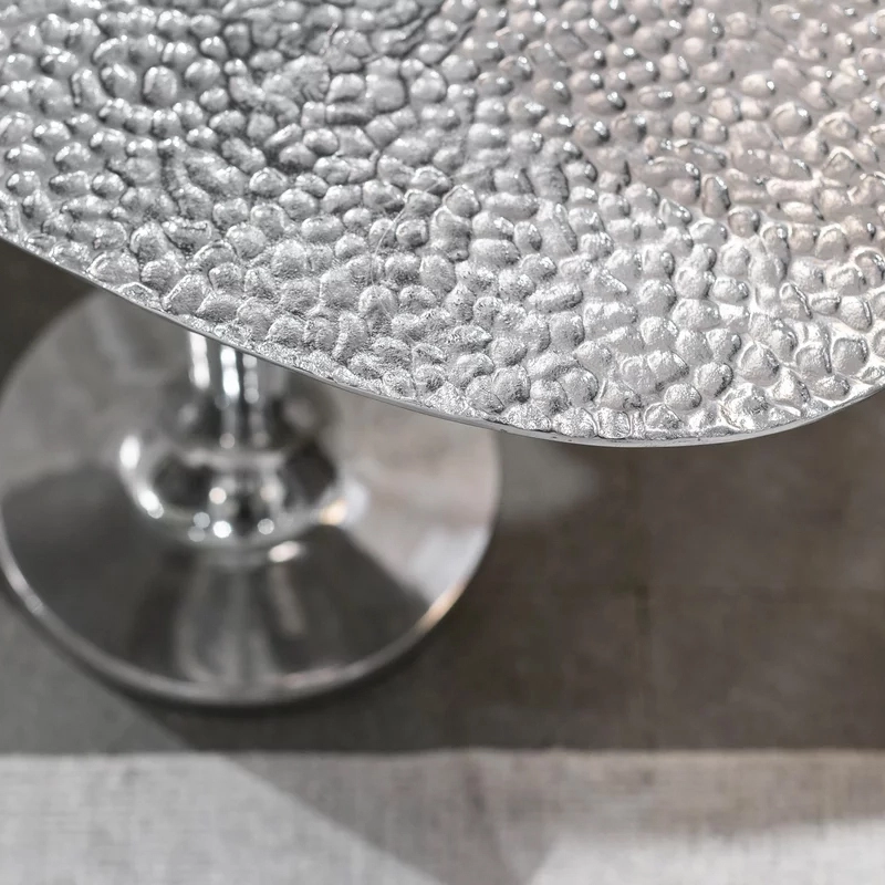 Editée par Gervasoni, la collection de tables basses Next se distingue par ses jeux particuliers de lumière et de reflets. Next est entièrement réalisée en fonte d’aluminium polie et se décline en différentes tailles et hauteurs. Le piètement central unique s’unit à un plateau agrémenté d’un effet martelé. La surface polie permet à la lumière de créer des effets toujours différents.