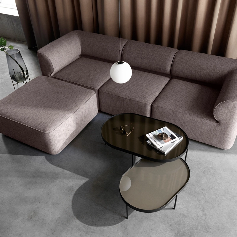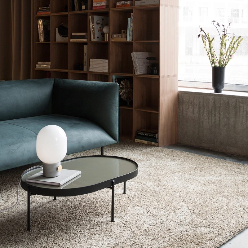 table basse design. La collection Nono est le résultat de la rencontre entre deux studios de design scandinaves, Note Design Studio et Norm Architects, qui ont découvert un intérêt commun pour la juxtaposition de plateaux massifs avec des pieds minces, et ont décidé très vite de collaborer. Le design à la fois épuré et accrocheur de cette