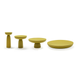 Olo Colors propose quatre modèles de différentes dimensions, disponibles en finition jaune ou orange foncé. Ce sont des sculptures modernes qui s’intègrent parfaitement dans l’espace domestique. L’association des formes géométriques et du bois laqué crée une collection de tables au caractère fort et à la silhouette douce.