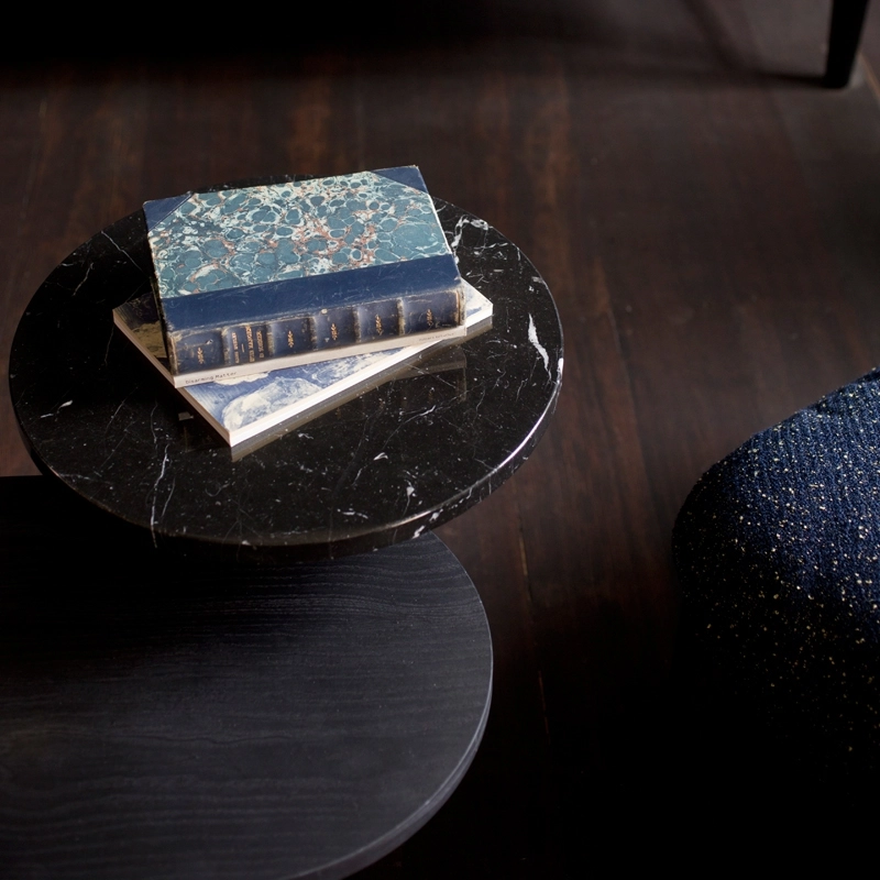 Les tables basses Palette sont composées de trois formes distinctes magnifiquement équilibrées à des hauteurs différentes. Le designer orchestre d’une main de maître les formes, les couleurs et les matériaux pour former un ensemble élégant et sculptural. Dans le salon,