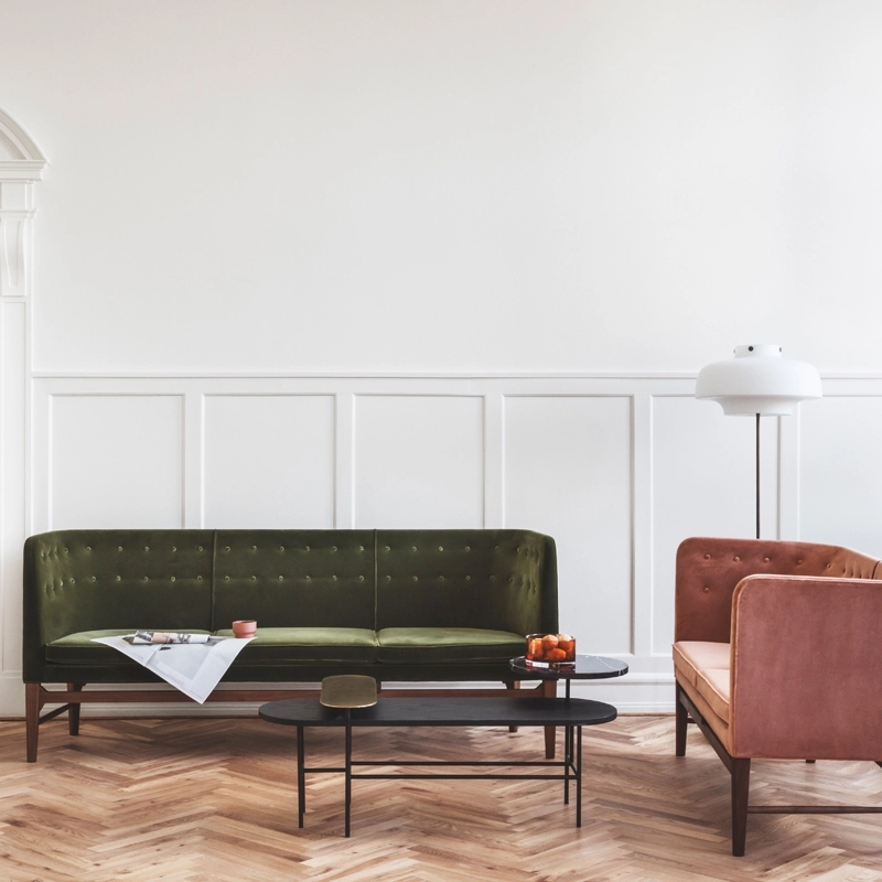 And Tradition apporte de la légèreté et s’associe facilement à différents styles de canapé et fauteuils. La collection comprend également des guéridons de différentes formes un bureau.