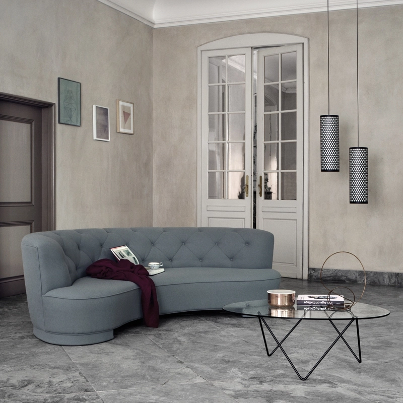 En 1955, l'architecte fonctionnaliste Barba Corsini rénove le bâtiment « La Pedrera » à Barcelone d'Antoni Gaudi, et réalise le mobilier destiné aux appartements dont une série de luminaires et une table basse. Editée par Gubi, la table basse Pedrera est composée d'une base en acier sur laquelle repose un plateau en verre et qui reprend la forme de la base des lampes. La table basse est à la fois robuste et légère visuellement par sa conception. La table basse Pedrera de Gubi apporte complète élégamment le salon avec une touche graphique.