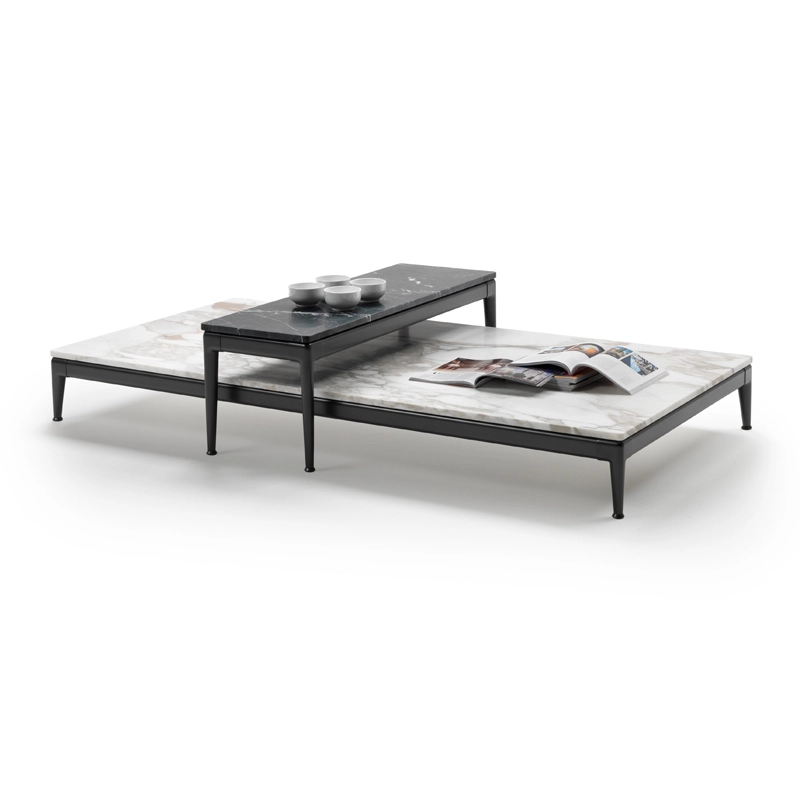 Les pieds fuselés de la table Pico apportent une touche de dynamisme et une remarquable légèreté visuelle. Ils sont fabriqués en fonte d'aluminium et disponibles en une variété d'élégantes finitions, tandis que le plateau aux bords arrondis existe en différents types de marbre ou en bois plaqué noyer canaletto ou frêne en de nombreuses finitions. La table et les tables basses Pico de Flexform sont disponibles en différentes tailles et se démarquent par une grande polyvalence et un haut degré de personnalisation grâce aux innombrables combinaisons possibles entre les finitions du plateau et celles de la structure.