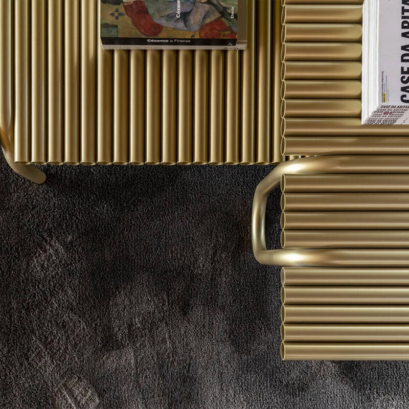 La collection Pipelines créée par Bcsxy et éditée par la marque Mogg comprend un ensemble de tables basses et une console en métal, qui se caractérisent par un design graphique puissant et une forte personnalité.  Pipelines se constitue d’un plateau qui associe des tubes métalliques peints, et recourbés par endroits pour obtenir un ou plusieurs pieds rigides. Les surfaces créées par le rythme répétitif des tubes de Pipelines créent un élégant contraste entre simplicité et solidité.  Qu’il s’agisse de la console à fixer au mur ou des tables basses carrées et rectangulaires, la collection Pipelines saura meubler vos intérieurs avec une grande sophistication.