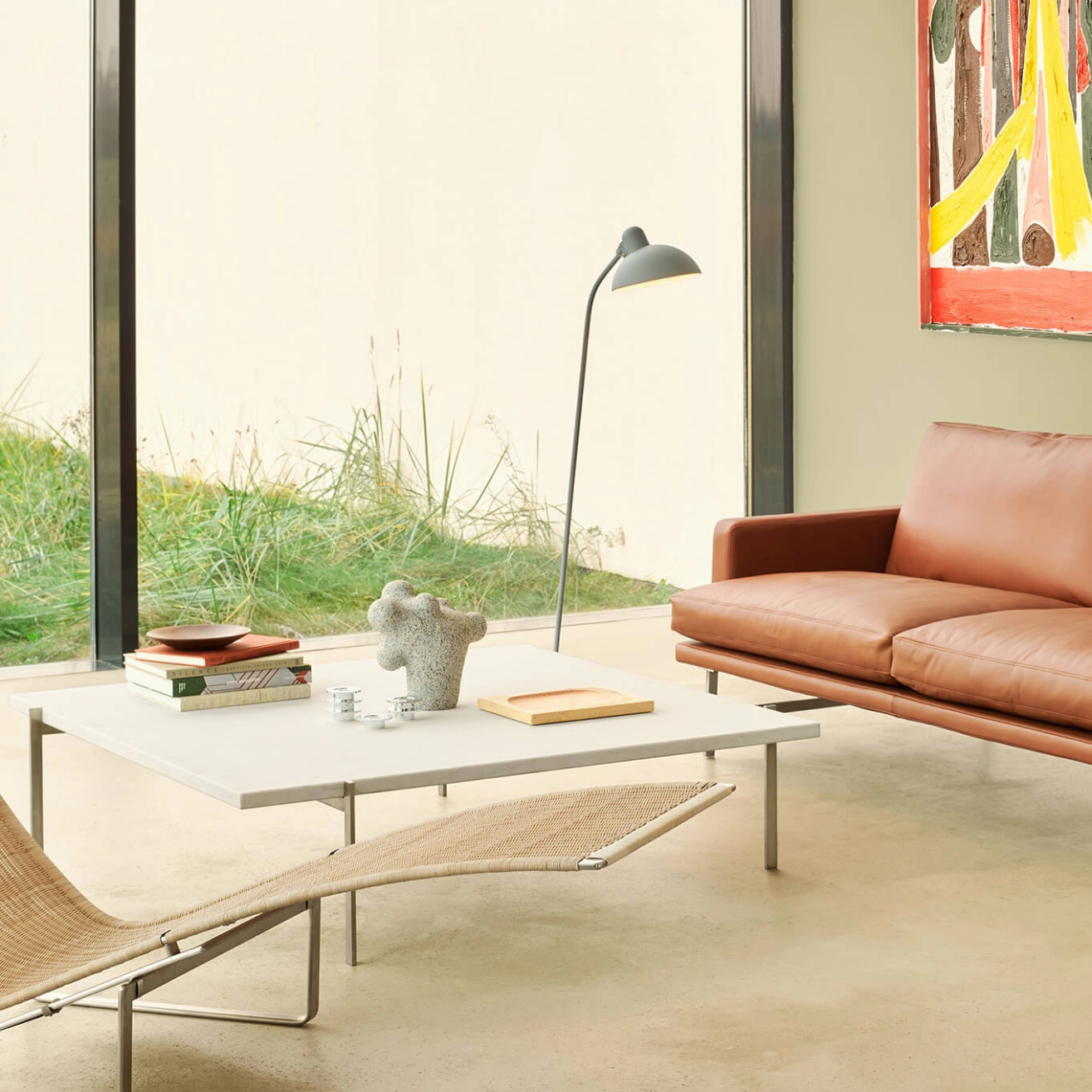 Minimaliste, la table basse PK61A est une création du designer Poul Kjaerholm pour Fritz Hansen. Cette table aux proportions parfaites est comme un manifeste du designer et montre l'évolution de Poul Kjaerholm d'un designer industriel à un designer de mobilier. Son design unique provient de sa structure, réalisée à partir de quatre éléments identiques reliés par des vis de machine. Le plateau amovible, simplement posé sur la structure, atteste le principe récurrent du designer d'utiliser la gravité pour maintenir les éléments en place. Le plateau de PK61 est disponible en verre, granit ou marbre pour s'adapter à tous les styles de salon. La base est en acier inoxydable satiné.