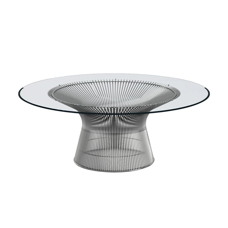 En 1966, Warren Platner dessine une collection de mobilier, devenue iconique, qui se caractérise par une silhouette sculpturale. En transformant de simples tiges d’acier, l’architecte et designer donne naissance à Platner, une collection élégante de sièges et de tables avec une base formée de faisceaux de fils d’acier. Editée par Knoll, la table basse Platner est à la fois légère visuellement grâce à ses matériaux et robuste par la qualité de sa production. Convenant aussi bien aux environnements domestiques que collectifs, cette petite table est parfaite pour accompagner des fauteuils lounge.