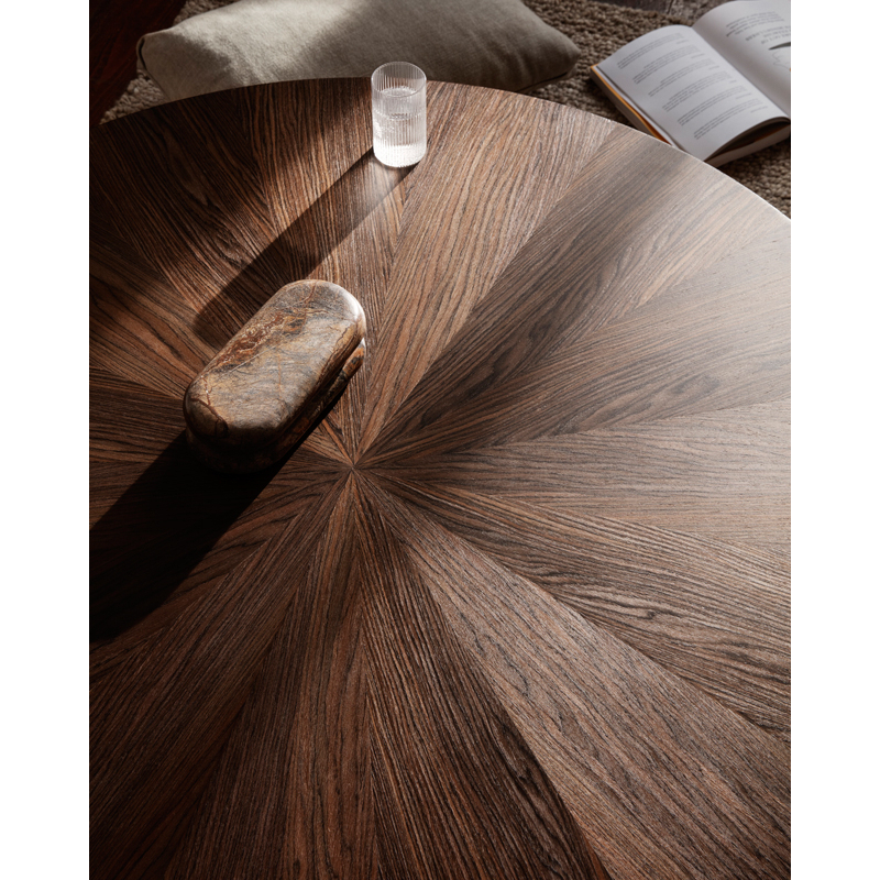 La table basse Post Coffee Large est dotée d'un design simple et essentiel. Fabriquée à partir de bois certifié FSC, elle se démarque par son plateau en marqueterie réalisée à la main, disponible en motif d'étoile ou de lignes. Disponible en deux tailles, Post Coffee possède trois pieds cylindriques robustes tandis que son plateau forme une sphère élégante.
