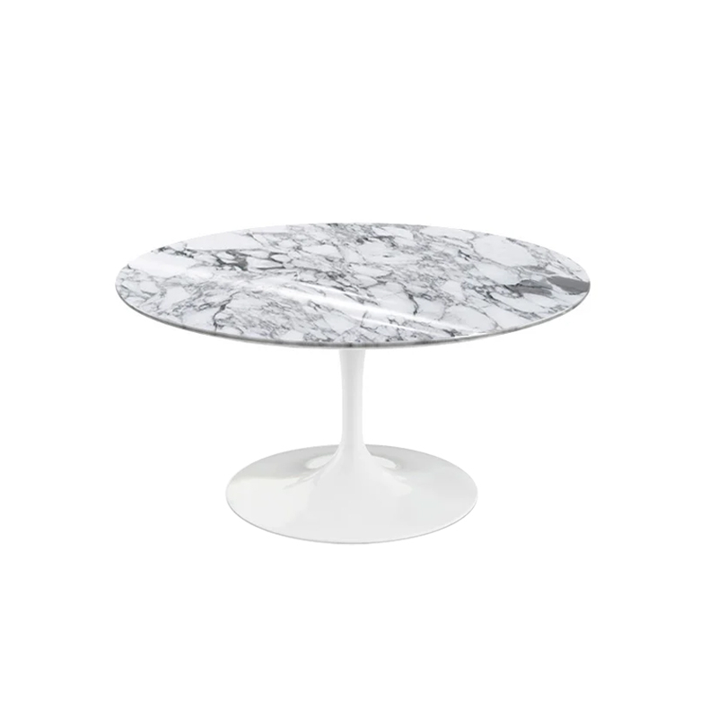 Les tables d'Eero Saarinen "Tulipe", conçues dans les années 50, font partie des meubles cultes de l'histoire du design. Intemporelles, copiées mais jamais égalées, elles allient sobriété et élégance et trouvent leur place dans tout type d'intérieur. Le plateau de la table Saarinen est caractérisé par un chant biseauté qui accentue sa légèreté, quelque soit sa dimension. La table basse Saarinen est équipée d'un pied en fonte d'aluminium avec une finition Rilsan table basse. Le plateau en marbre est recouvert d'un vernis polyester transparent, protégeant la table des tâches.