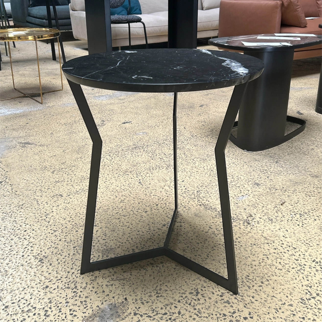Plateau en marbre et piètement en métal patiné