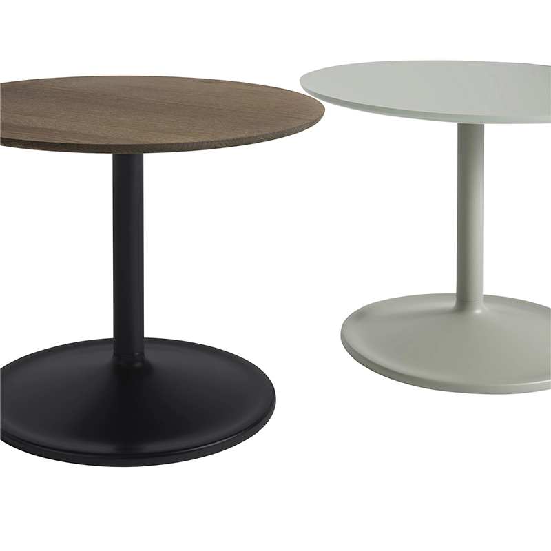 Dessinée par Jens Fager pour Muuto, la table d'appoint Soft est à la fois subtile et pleine de caractère avec sa silhouette douce et ses finitions de qualité. Parfaite pour de nombreuses applications que ce soit à la maison ou dans un environnement collectif, Soft se décline dans une variété de tailles et de finitions. La table d'appoint Soft peut être utilisée aussi bien seule qu'en combinaison de plusieurs éléments. Le pied en acier thermolaqué est associé à un plateau rond nanolaminé (noir), stratifié (vert cendré, orange), en linoléum (blanc cassé) ou en chêne massif naturel ou fumé.