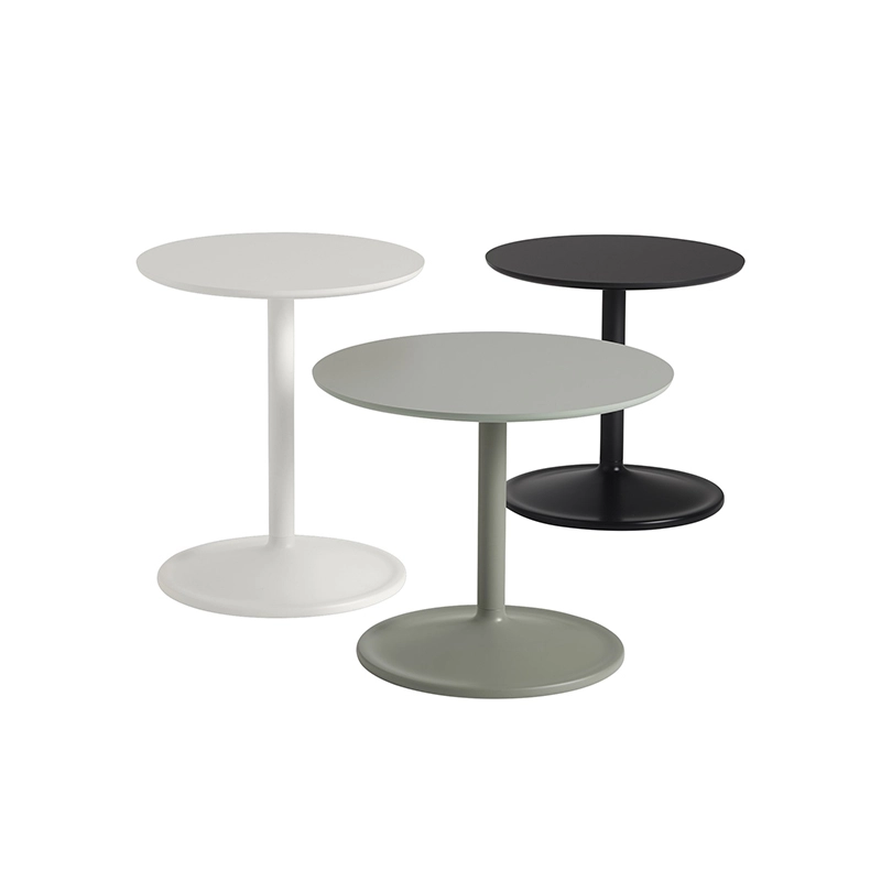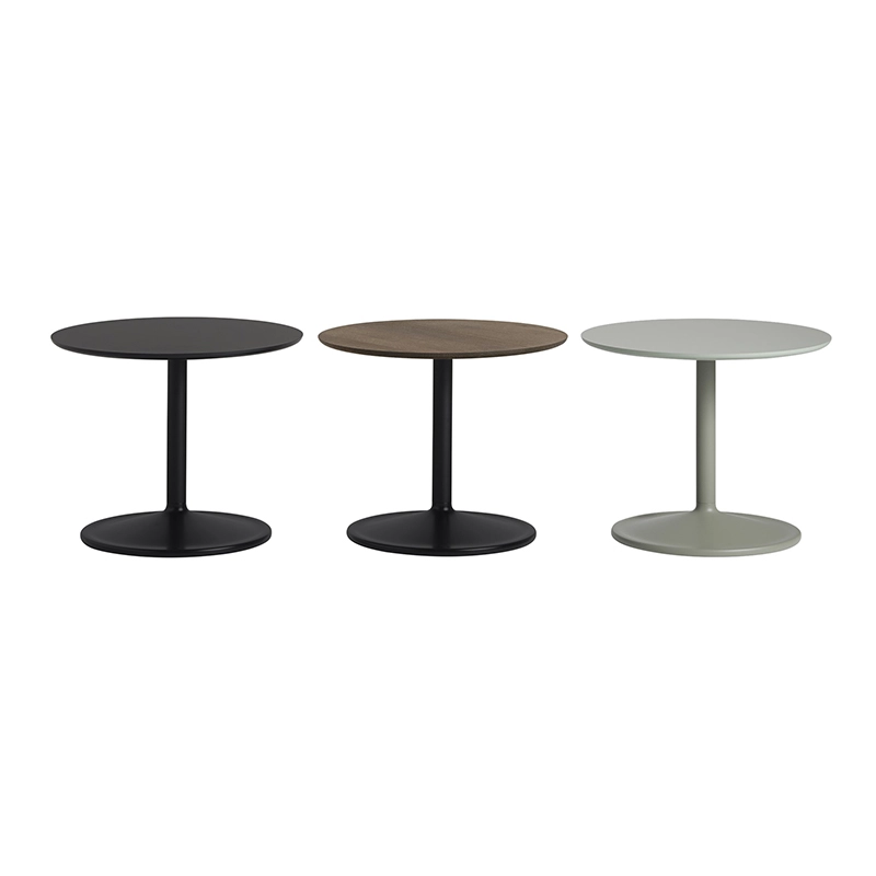 Dessinée par Jens Fager pour Muuto, la table d'appoint Soft est à la fois subtile et pleine de caractère avec sa silhouette douce et ses finitions de qualité. Parfaite pour de nombreuses applications que ce soit à la maison ou dans un environnement collectif, Soft se décline dans une variété de tailles et de finitions. La table d'appoint Soft peut être utilisée aussi bien seule qu'en combinaison de plusieurs éléments. Le pied en acier thermolaqué est associé à un plateau rond nanolaminé (noir), stratifié (vert cendré, orange), en linoléum (blanc cassé) ou en chêne massif naturel ou fumé.