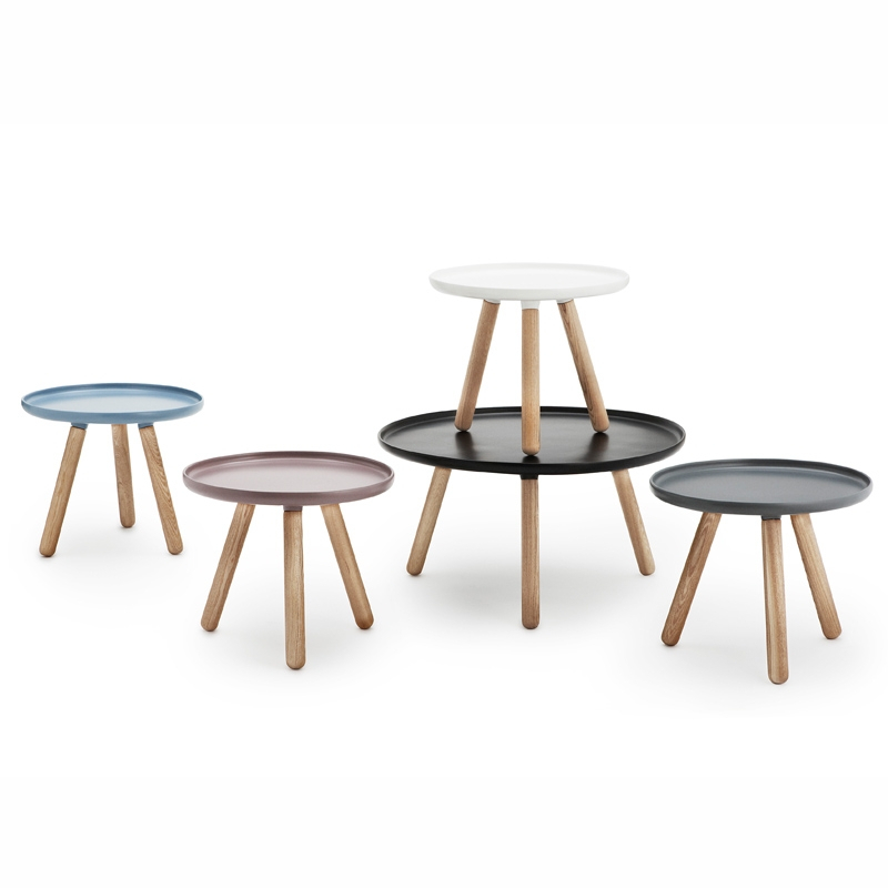 Nicholai Wiig Hansen créé pour Normann Copenhagen une petite table d'appoint au design sobre alliant fonctionnalité et esthétique. Tablo présente un style hybride avec l'interaction de deux matériaux, chacun à l'origine d'une impression différente, mais dont l'association résulte en un objet au style épuré et singulier. Le bord effilé et raffiné du plateau contraste avec ses formes arrondies. Tablo est une petite table minimaliste, sans détail superflu. Le nom Tablo fait référence aux mots français «table» et «tableau», ce dernier évoquant une composition, comme une mise en scène structurée des pieds en bois et des plateaux colorés en composite. Tablo est déclinée en deux tailles et différents coloris pour s'adapter à tous les salons. L'assemblage de Tablo est facile et rapide, et ne nécessite d'aucune vis.