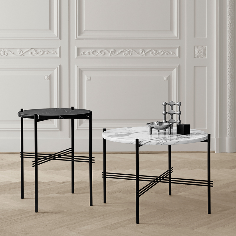 La collaboration entre le studio GamFratesi et la marque Gubi incarne la rencontre du design italien et l'inspiration danoise. L'approche minimaliste et l'artisanat traditionnel des pays scandinaves s'associent à un concept fort et émotionnel. GamFratesi joue sur les contrastes de matériaux et de formes avec un plateau en marbre reposant sur un piètement fin en métal. Graphique et élégante, la table basse design TS de Gubi est idéale seule ou en composition en jouant sur les tailles et les couleurs pour créer un ensemble original et personnel dans le salon.