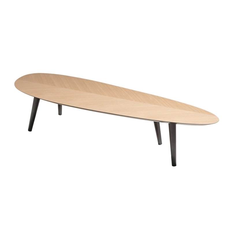 Dans la lignée des tables de repas Tweed, Garcia Cumini et Zanotta proposent Tweed mini, une table basse disponible en trois dimensions. Les petites tables Tweed Mini peuvent être utilisées seules ou compositions de plusieurs modèles, jouant avec les différentes hauteurs qui se chevauchent, pour un ensemble plein de caractère. Le plateau de Tweed Mini se démarque par sa forme organique et sa surface impressionnante, nécessitant un travail d’une grande précision, qui lui confère une perception inhabituelle, changeante en fonction du point de vue. Les fines feuilles de bois de chêne massif ou de bois de noyer Canaletto sont soigneusement placées côte à côte jusqu'à ce que les lignes naturelles du bois créent un signe graphique en continuité avec la ligne diagonale qui sépare les deux parties du dessus de la table, presque comme s'il formait les nervures d'une feuille. Selon, le modèle, chaque table Tweed Mini est montée sur trois ou quatre pieds en acier tubulaire noir mat, garantissant une parfaite stabilité.