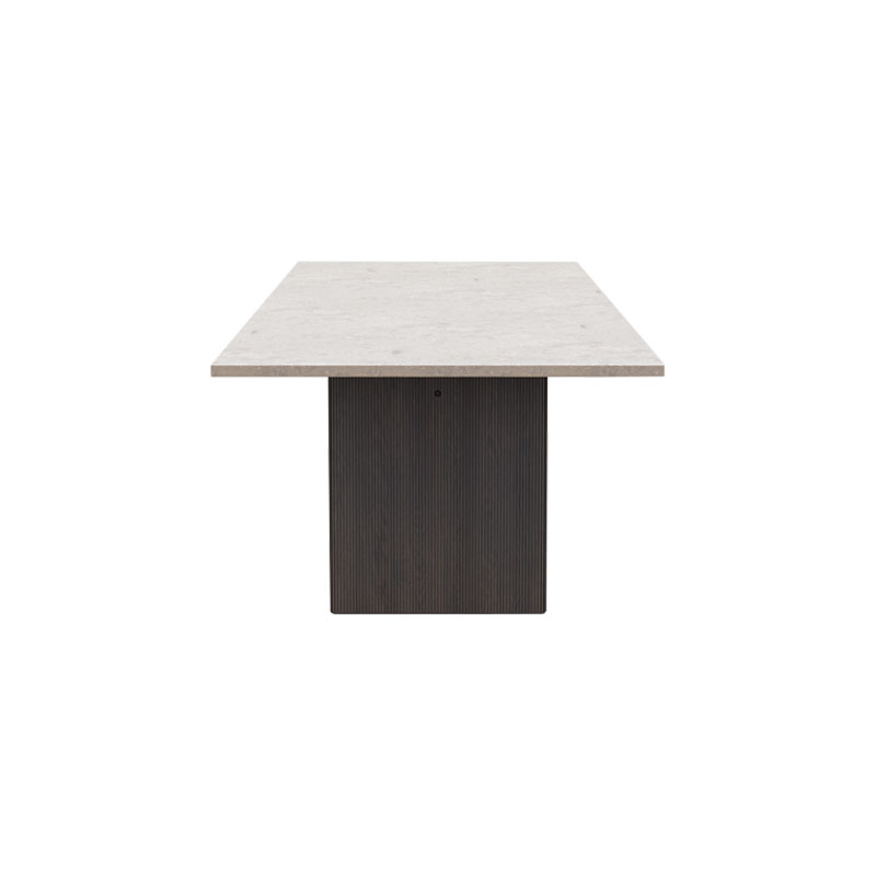 Plateau calcaire Jura gris-bleu ou marbre Pietra gris, pieds en chêne teinté foncé ou clair
