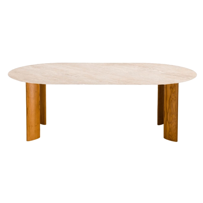 Imaginée par The Socialite Family, la table Carlotta Alta Travertin / Iroko 8 places illustre l’équilibre parfait entre design contemporain, matériaux naturels et savoir-faire artisanal européen. Inspirée du mobilier moderniste des années 50 et 60, elle séduit par sa silhouette graphique, à la fois structurée et aérienne. Son piètement en frêne Iroko, travaillé avec soin, dévoile des nuances dorées et des veinures subtiles qui soulignent la noblesse du bois. Il soutient un plateau en travertin naturel, pierre emblématique au ton beige lumineux, marquée de fines cavités et d’irrégularités qui lui confèrent toute sa richesse et son authenticité. Chaque table est unique, façonnée par des artisans européens selon des techniques de haute précision. Conçue pour accueillir jusqu’à huit convives, la Carlotta Alta 8 places incarne la convivialité et l’élégance au quotidien. Véritable pièce maîtresse d’une salle à manger, elle s’intègre harmonieusement dans tous les univers du minimalisme contemporain à un intérieur plus classique apportant chaleur, matière et équilibre. Avec la table Carlotta Alta Travertin / Iroko, The Socialite Family signe une création intemporelle, où le naturel du travertin rencontre l’élégance du design parisien.