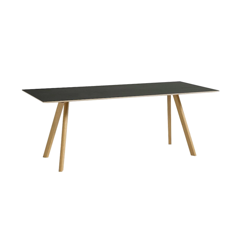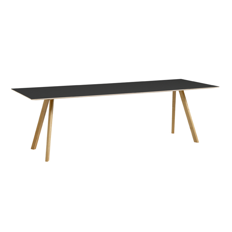 Pour sa nouvelle collection, la maison d'édition Hay invite les designers français Ronan et Erwan Bouroullec à dessiner une nouvelle gamme de mobilier pour l'Université de Copenhague. La collection comprend une chaise, un tabouret de bar et différentes tables. Les designers se sont inspirés d'une chaise d'université dessinée par l'architecte Bernt Pedersen, à l'identité simple. La série Copenhague cherche à maintenir la simplicité évidente qui marque cette chaise reprenant le piètement tréteau, tout en créant une gamme de mobilier scolaire qui s'inscrit dans notre époque et s'adapte aux besoins fonctionnels d'une université. La collection s'éloigne un peu de l'esprit institutionnel de la chaise de départ par son originalité et ses formes. La table Copenhague Table 30 est composé d'un plateau en chêne recouvert de lino, fixé sur un piètement tréteau en chêne massif. Cette table de salle à manger peut être accompagnée des chaises colorées de la même collection.