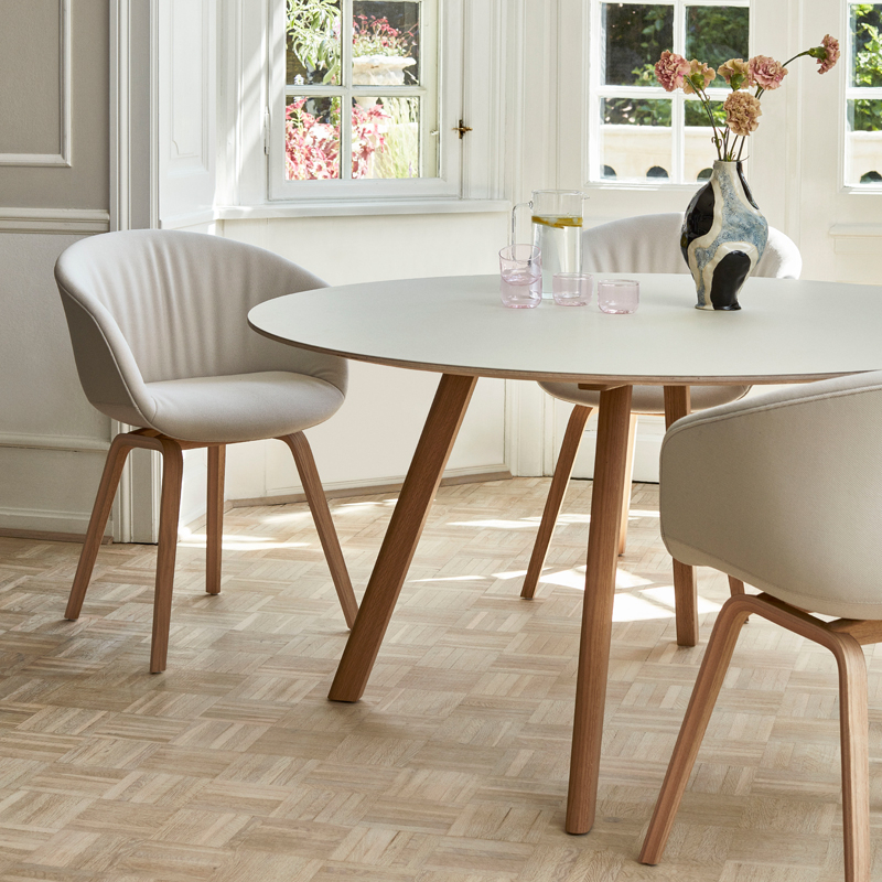 COPENHAGUE ROUND TABLE CPH25 Ø140 Lino blanc cassé/ chêne vernis à base d'eau