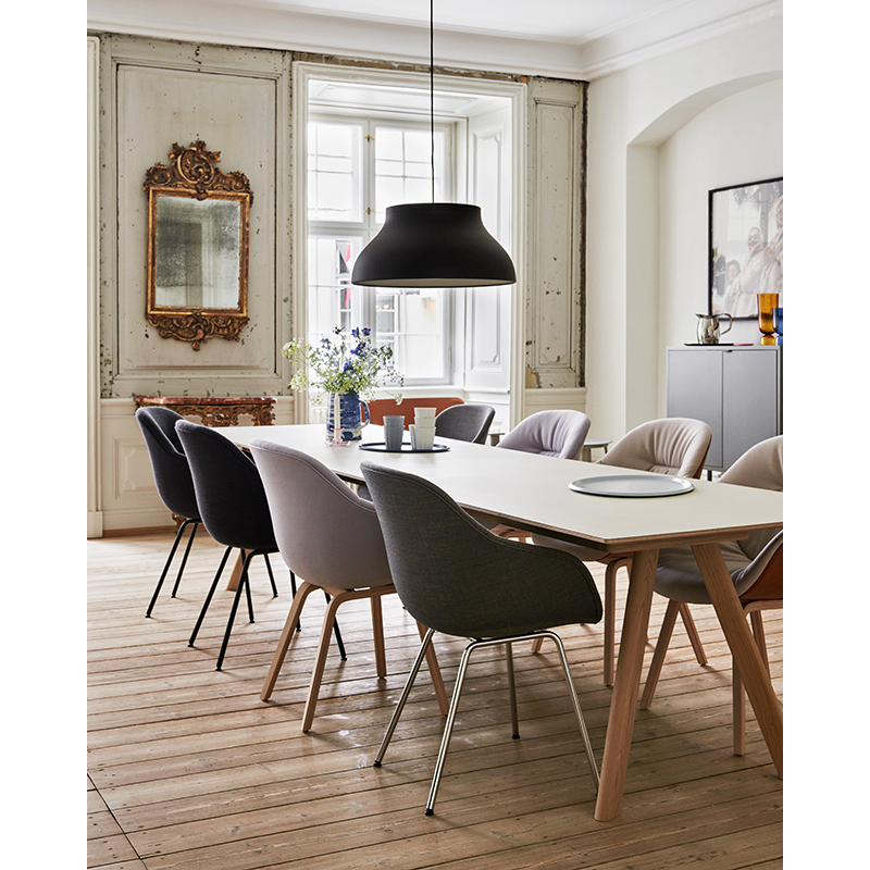 table CPH 30 Extendable est dotée des mêmes pieds inclinés ainsi que du caractère fort caractéristiques de la série. Cette table se démarque néanmoins par son design extensible. Grâce au mécanisme central coulissant de la table, des rallonges peuvent être insérées facilement, pour agrandir le plateau à la taille désirée. La longueur flexible en fait une table adaptée aussi bien à des bureaux ou des environnements publics, qu’à des espaces domestiques. Editée par