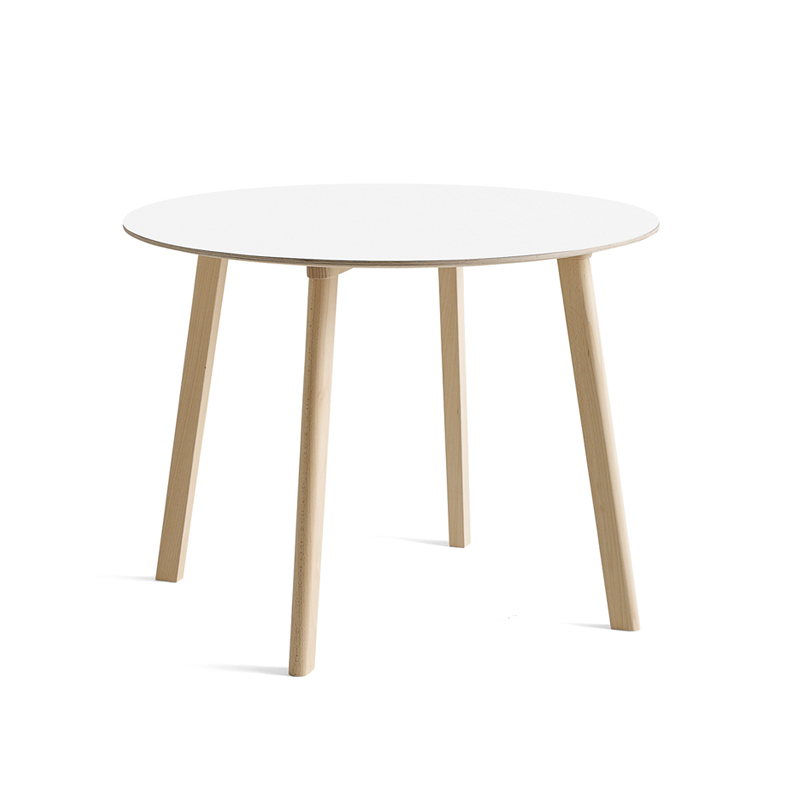 Faisant partie de la famille Copenhague dessinée par Ronan et Erwan Bouroullec pour Hay, la table CPH Deux 220 partage le même profil épuré et l’identité forte qui caractérisent toute la collection. Avec ses pieds effilés, son plateau rond et ses dimensions compactes, la table CPH Deux 220 s’intègre aussi bien dans les espaces domestiques que dans les environnements publics, comme les bureaux et les cafés. Le plateau est stratifié à base de nanotechnologie, ce qui permet une surface ultra mate, douce au toucher, anti-traces de doigts et facile à nettoyer. Le piètement est disponible en hêtre non traité ou en chêne avec un vernis à base d’eau.