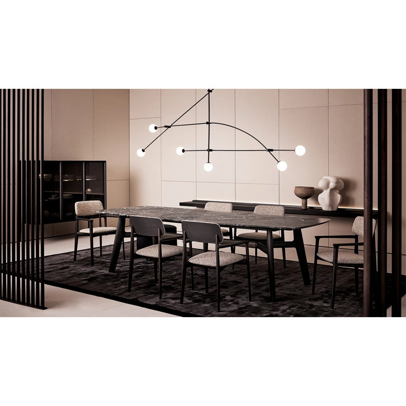 Conçue par Emmanuel Gallina pour Poliform, Curve est une table essentielle et solide, où se rencontrent des lignes douces et des détails d’une grande force visuelle comme la traverse en bois. La table Curve est disponible avec une structure en bois et un plateau en marbre ou en bois avec un bord travaillé à la main. Élément d’une grande force expressive, la traverse peut être recouverte de cuir.