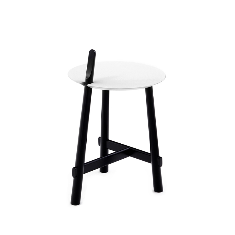 La designer Patricia Urquiola collabore avec le nouvel éditeur français COEDITION et dessine la collection Altay. Celle-ci allie tradition et modernité à travers notamment un petit guéridon composé d'une structure tripode réalisée en hêtre massif naturel ou laqué noir. Le piètement est surmonté d'un plateau rond en medium laqué noir ou blanc. Un des pieds, plus long que les autres, dépasse au-dessus du plateau et forme ainsi une poignée pratique pour déplacer la petite table partout dans la maison. Avec ses lignes pures et ses matériaux naturels de grande qualité, Altay est un guéridon design qui s'intègre aussi bien dans le salon en bout de canapé, que dans une chambre pour faire office de table de chevet.