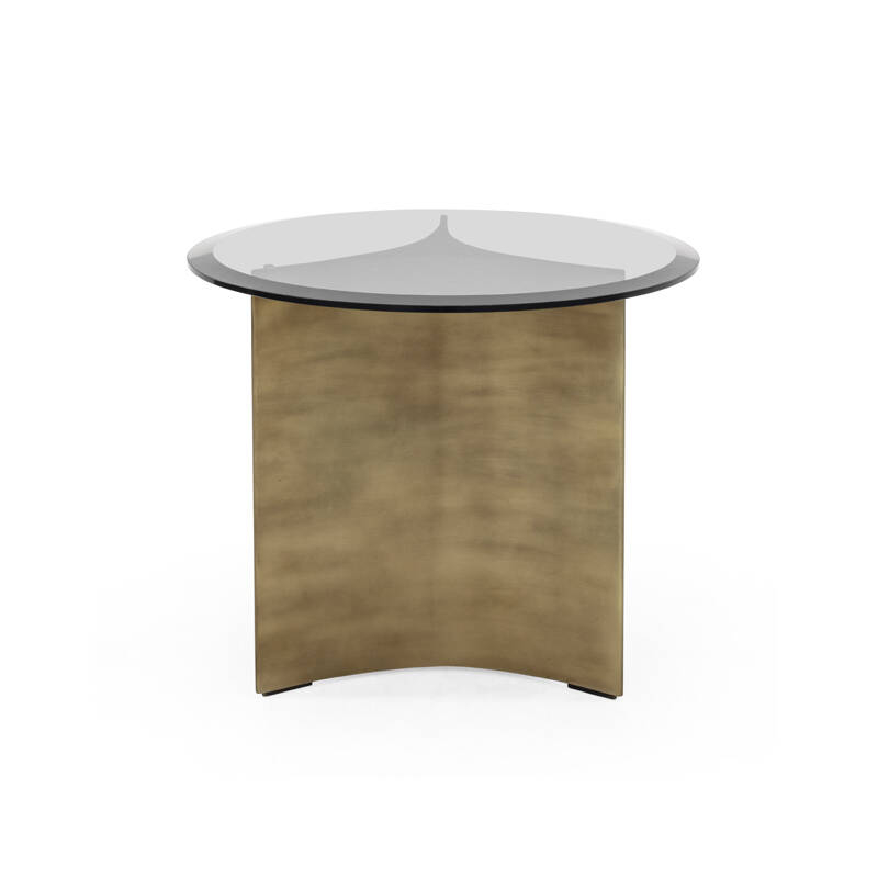 La collection de petites tables Arc se distingue par ses formes géométriques. Le plateau rond en verre fumé laisse voir la base très élégante en acier laitonné. Avec sa silhouette sculpturale et ses finitions raffinées, la table basse Arc de Wendelbo apporte une sensation presque magique dans les intérieurs. Les trois tailles disponibles peuvent être utilisées seules ou en composition de plusieurs éléments.