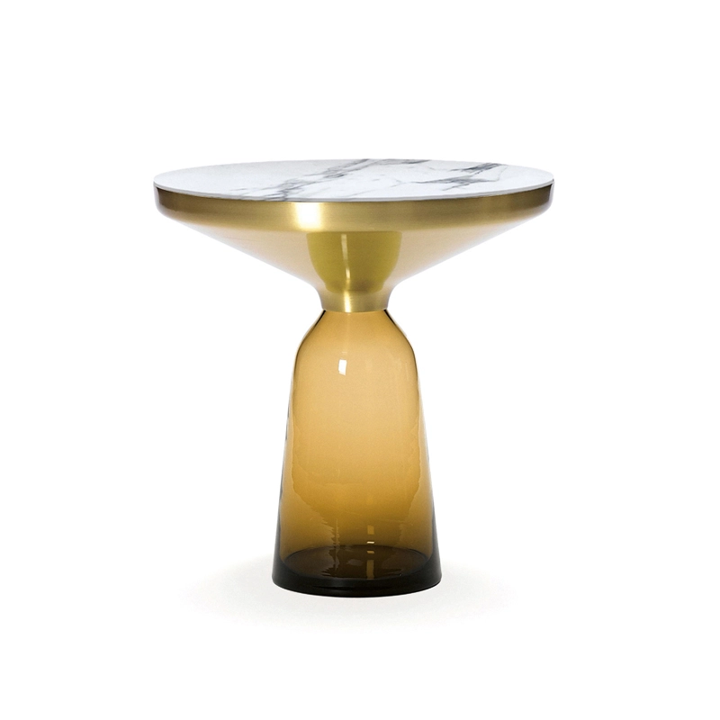Désormais disponible avec un plateau en marbre, la collection Bell Table de Sebastian Herkner bouleverse l'usage habituel des matériaux en associant le verre, matériau léger et fragile utilisé pour la base, et un plateau réalisé en métal, qui semble flotter au-dessus. Le piétement en verre teinté est soufflé de façon traditionnelle dans un moule en bois. Avec sa présence sculpturale, il contraste avec le cadre en laiton tout en formant une unité harmonieuse rappelant les courbes d'une cloche. Grâce à ses surfaces réfléchissantes et ses matériaux opposés, la Bell Table ajoute une touche raffinée et délicate dans le salon. Elle célèbre la beauté des matériaux avec leurs couleurs et leurs formes, associées aux qualités d'un travail artisanal rigoureux. La table basse Bell Coffee et la table d'appoint Bell Side sont des pièces uniques et fragiles, chacune étant réalisée intégralement à la main et éditée par Classicon.