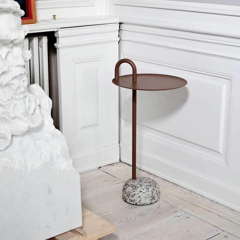 Créée par Shane Schneck pour la marque Hay, Bowler est une table d'appoint compacte idéale pour les petits espaces. Elle se compose d’un tube simple qui s'étend vers le haut, créant un profil défini et servant également de poignée fonctionnelle. La tige, la poignée et le plateau sont en acier finition époxy. Ils sont associés à une base en granit massif qui assure une bonne stabilité, tout en restant assez léger pour déplacer facilement la table. L’association des matériaux ainsi que les lignes douces de Bowler en font une table d'appoint séduisante qui s’intègre dans différents styles d’espaces aussi bien à la maison que dans les environnements collectifs.