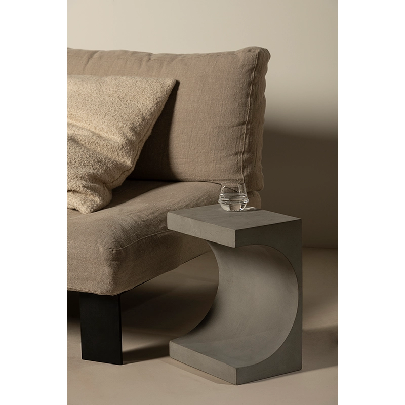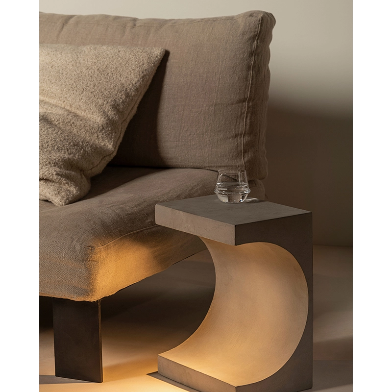 La lampe à poser et table basse Concrete Tangent, conçue par le designer français Patrick Paris et éditée par Serax, se caractérise par son esthétique épurée et sa fonctionnalité innovante. La forme de la lampe unique en demi-lune, éclairée de l'intérieur, diffuse une lumière douce et homogène, créant une ambiance chaleureuse. Concrete Tangent ne se contente pas de simplement d'illuminer les espaces, elle peut également servir de table d'appoint pratique. Son design en béton gris offre à cet objet une allure moderne et intemporelle, lui permettant de s'intégrer dans de nombreux styles de décoration intérieure. La table basse et lampe à poser Concrete Tangent ajoute une touche de sophistication grâce à son style sobre et contemporain, associé à sa fonctionnalité polyvalente.