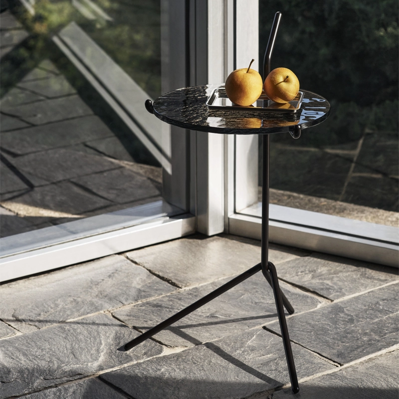 Table d'appoint guéridon HALTEN SH9 Verre fumé / Acier noir AND TRADITION