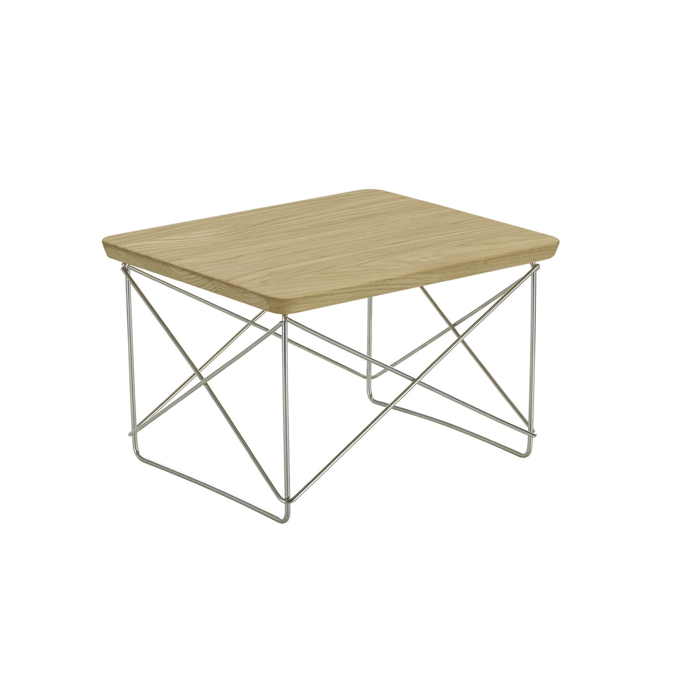 La LTR, Low Table Rod Base, a été conçue en 1950 par le couple de designers Charles et Ray Eames comme petite table basse d'appoint permettant de nombreuses variations et utilisée sous différentes formes dans leur propre maison, la Eames House. Éditées par Vitra, on y trouve aujourd'hui encore un grand nombre de ces tables, disposées séparément ou regroupées, décorées d'objets issus de la collection Eames ou faisant simplement office de tablette près d'un fauteuil et d'un canapé. La table basse LTR fait aujourd'hui partie de la collection du Vitra Design Museum. Le plateau en chêne est disponible avec une base complexe comportant deux tiges en acier galvanisé en U avec des traverses qui apportent la stabilité nécessaire pour assurer leur fonctionnalité. Une table basse Vitra qui s'adapte aisément à votre environnement : en bout de canapé, en table de chevet…