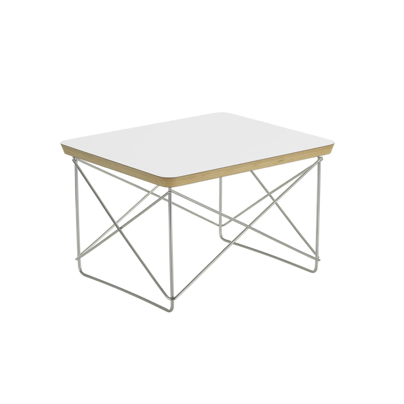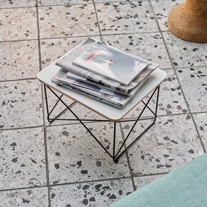 La LTR, Low Table Rod Base, a été conçue en 1950 par le couple de designers Charles et Ray Eames comme petite table basse d'appoint permettant de nombreuses variations et utilisée sous différentes formes dans leur propre maison, la Eames House. Éditées par Vitra, on y trouve aujourd'hui encore un grand nombre de ces tables, disposées séparément ou regroupées, décorées d'objets issus de la collection Eames ou faisant simplement office de tablette près d'un fauteuil et d'un canapé. La table basse LTR fait aujourd'hui partie de la collection du Vitra Design Museum. Le plateau stratifié est disponible en noir ou en blanc et la base complexe comporte deux tiges en acier galvanisé en U avec des traverses qui apportent la stabilité nécessaire pour assurer leur fonctionnalité. Une table basse Vitra qui s'adapte aisément à votre environnement : en bout de canapé, en table de chevet…