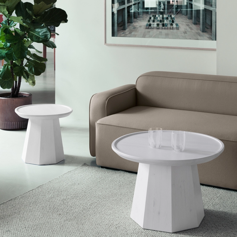 Conçue par Simon Legald, La série de petites tables Pine exprime à la fois un lien fort et typiquement nordique au concret et à la terre ainsi qu'une forme d'expression très avant-gardiste. Le design de ces tables réalisées en pin massif est à la fois expressif et sculptural. Avoir choisi de réaliser cette série en pin donne également une indication sur leur design. Les parties claires du bois ajoutent une note organique aux tables et leur forme ludique donne une nouvelle vie à ce bois souvent négligé. La table Pine de Normann Copenhagen est disponible en deux tailles, chacune pouvant être utilisée comme console ou table d'appoint, ou encore ensemble, créant une composition unique.