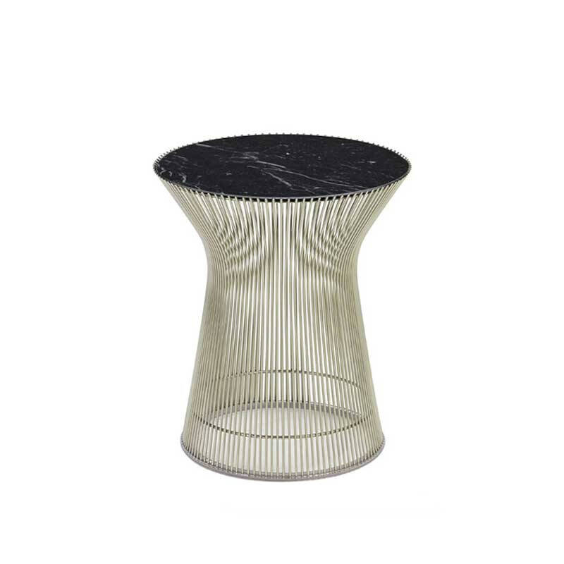 En 1966, Warren Platner dessine une collection de mobilier, devenue iconique, qui se caractérise par une silhouette sculpturale. En transformant de simples tiges d’acier, l’architecte et designer donne naissance à une collection élégante de sièges et de tables avec une base formée de faisceaux de fils d’acier. Editée par Knoll, le guéridon Platner est à la fois léger visuellement grâce à ses matériaux et robuste par la qualité de sa production. Convenant aussi bien aux environnements domestiques que collectifs, cette petite table est parfaite pour accompagner des fauteuils lounge.