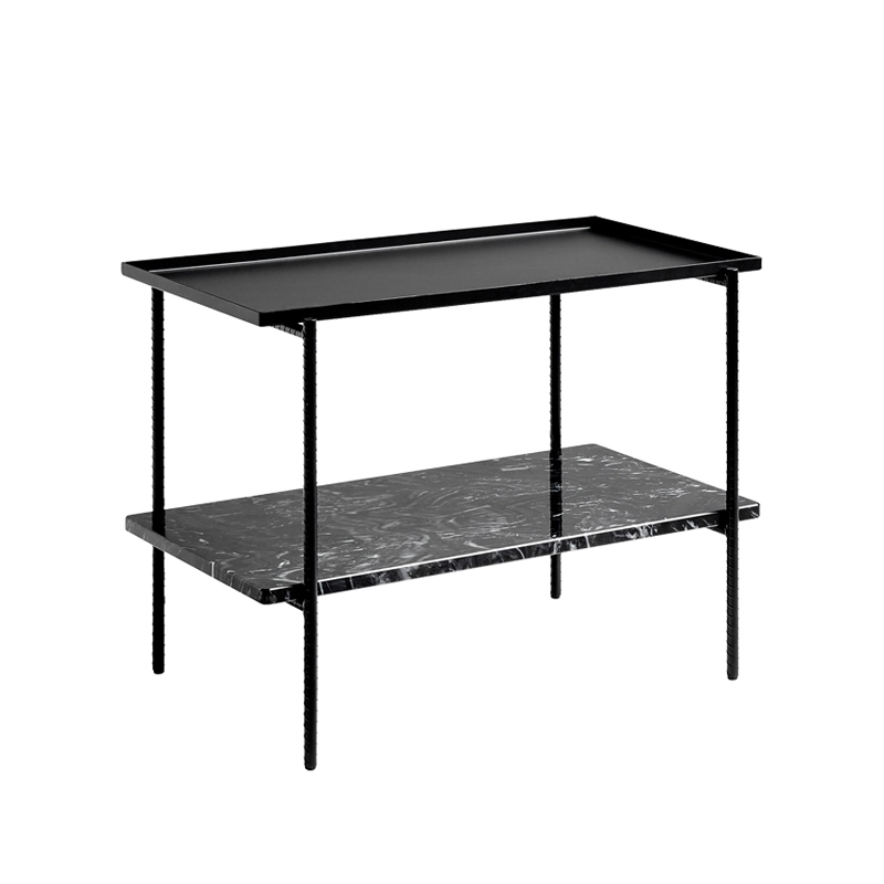 Table d'appoint guéridon REBAR 75x44 Marbre noir/ noir HAY