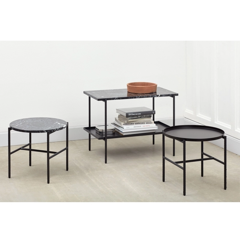 La collection Rebar de Sylvain Willenz est une série de tables basses design et tables d’appoint qui explore les possibilités de recontextualisation des matériaux de construction. Le design juxtapose une structure en barres d’acier renforcé avec des plateaux en marbre ou en acier pour créer une esthétique équilibrée. Editées par Hay, Les tables Rebar sont disponibles en plusieurs tailles différentes, de formes rondes ou rectangulaires et conviennent aussi bien à des espaces privés que publics.