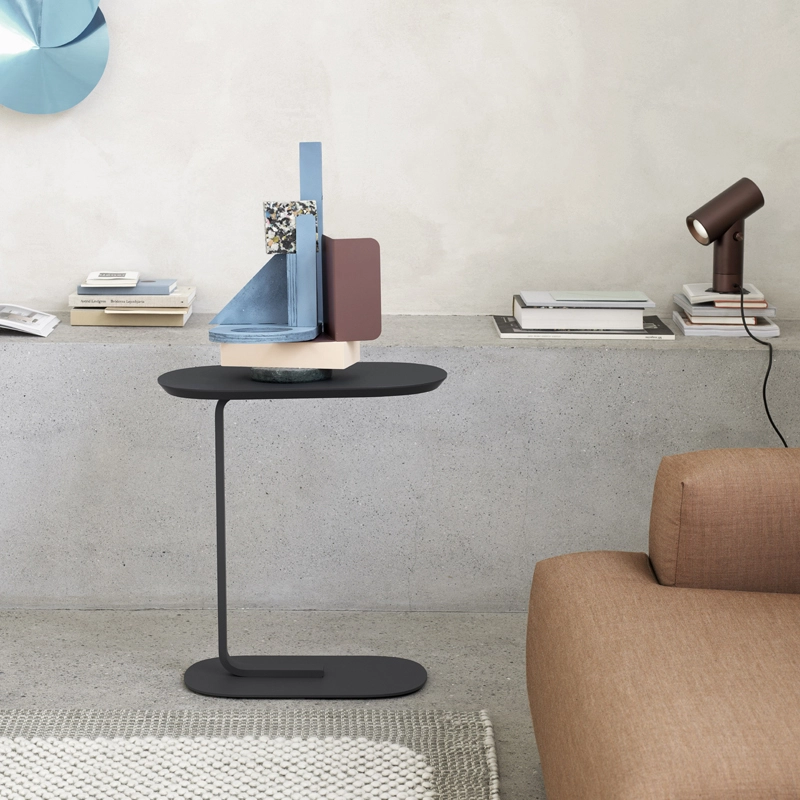Première création du studio Big-Game pour Muuto, Relate est une petite table d’appoint simple et maniable, légère visuellement autant dans son expression que dans sa fonction. Avec des lignes douces et des bords inclinés, la silhouette de la table est composée de deux formes connectées par une barre de métal. Le pied robuste permet à l’utilisateur de déplacer la table facilement selon les besoins. Le guéridon Relate est ainsi un complément très pratique de canapé ou de fauteuil, apportant une touche moderne dans n’importe quel espace. Que ce soit à la maison, dans un environnement de travail ou un espace d’accueil, Relate de Muuto possède une large palette d’applications et complète les besoins du quotidien, en servant de station de travail temporaire.