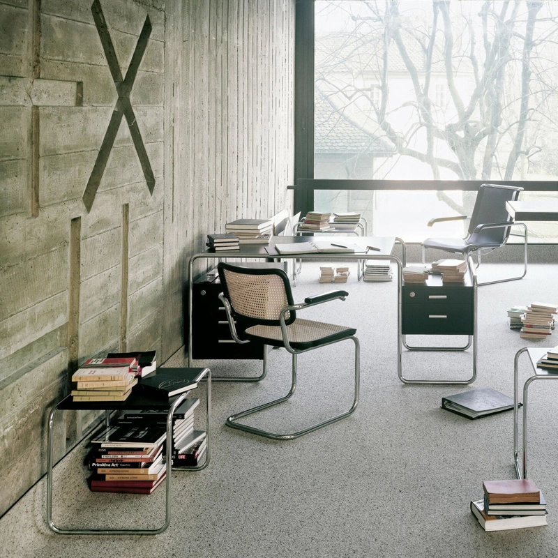 Architecte et designer de mobilier, Marcel Breuer, né en 1902 en Hongrie, aura une forte influence sur l’école du Bauhaus dont il est un élève brillant. Après un an à Paris dans un cabinet d’architecte, il revient au Bauhaus et y dirige l’atelier charpenterie de 1925 à 1928, combinant art et technologie. Au cours de ces années, il découvre l'acier tubulaire et crée sa collection en tube d’acier dont la chaise B3 plus connue sous le nom de Wassily Chair, éditée par Knoll. D'une grande modernité, ce fauteuil inspiré par un guidon de vélo attendra les années 60 pour connaitre un succès commercial et est aujourd’hui reconnu comme l’une des icônes du design moderne. Son créateur fut l'un des plus grands représentants du modernisme. Après un bref passage à Londres de 1935- 1937, dans l’entreprise Isokon, l’une des premières manufactures de design moderne au Royaume-Uni, il émigre aux Etats-Unis. Il enseigne à l’Harvard’s Architecture School et travaille comme architecte en collaboration avec Johnson et Paul Rudolph puis Walter Gropius. Il dissout son partenariat en 1941 et crée sa propre entreprise à New York spécialisée dans la création de maisons et de villas. Une fois de plus, son approche avant-gardiste lui fera connaître un grand succès. Breuer aimait expérimenter les matières telles que le bois, l'aluminium, l'acier, le béton, et ainsi révolutionner le design et l'architecture avec des œuvres intemporelles. Marcel Breuer est le premier architecte de l’histoire à exposer au Metropolitan Museum of Art.