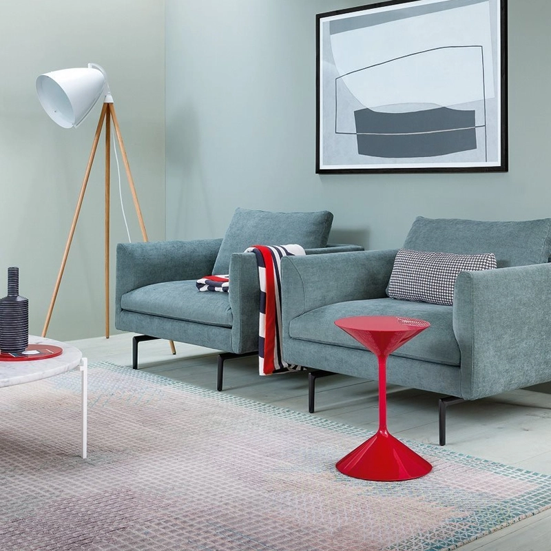 Dessinée par Prospero Rasulo en 2001, la série de petites tables basses Tempo se caractérise par deux cônes en polyuréthane assemblés par une tige en acier. Editées par Zanotta, ces tables d'appoint se distinguent par des lignes graphiques et légères. Particulièrement pratiques, elles s'intègrent aussi bien dans un salon en bout de canapé que dans une chambre