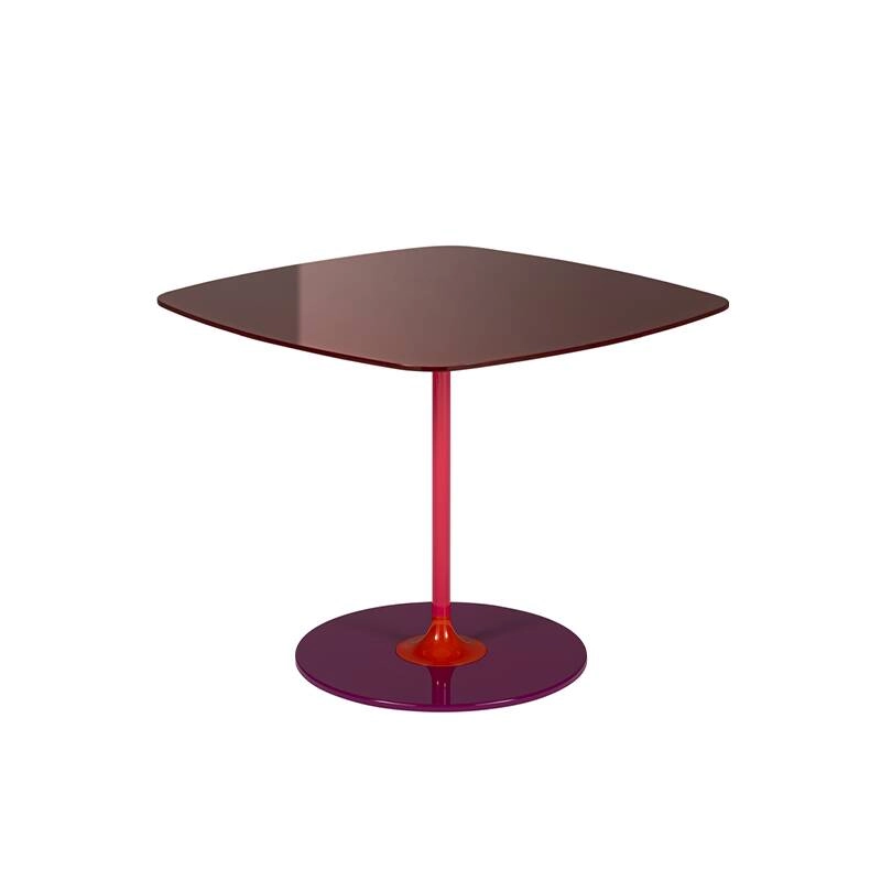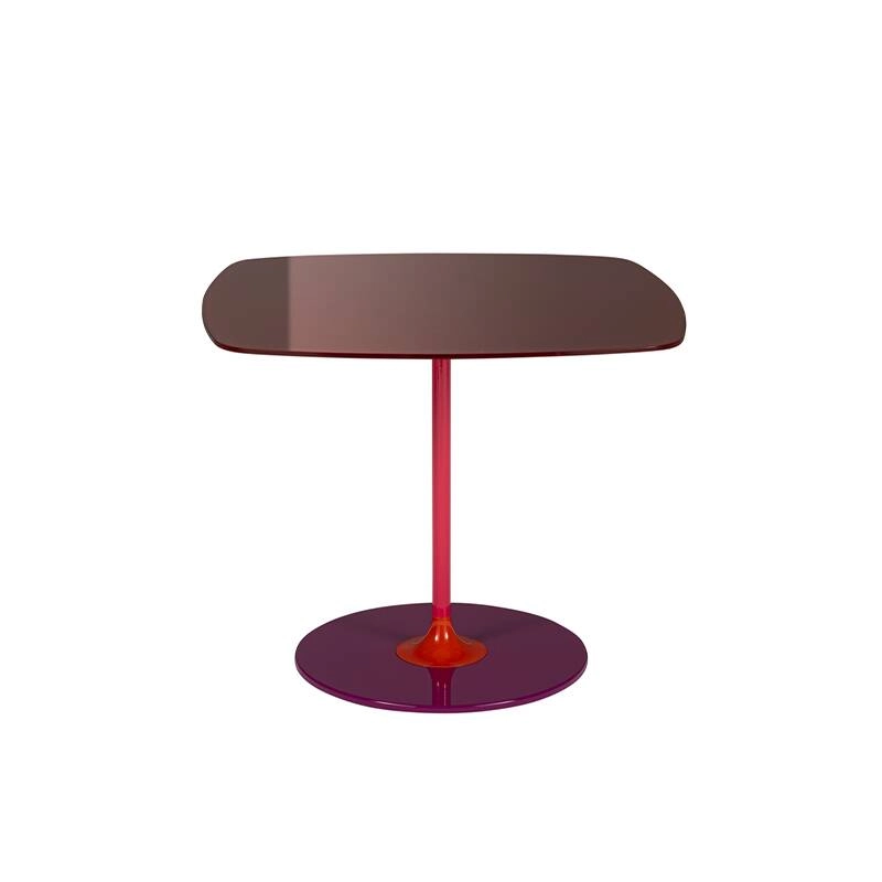 Les petites tables Thierry, dessinées par Piero Lissoni pour la marque Kartell, sont composées d'un plateau en verre et d'un pied central en métal coloré. Les finitions laquées ultra brillantes des tables Thierry, ainsi que les associations de couleurs utilisées leur donnent énormément de caractère. La beauté de ces petites tables réside dans leur apparence précieuse. La collection Thierry Kartell se décline en trois hauteurs avec des plateaux de formes différentes, ce qui permet d'associer plusieurs modèles dans des combinaisons originales.