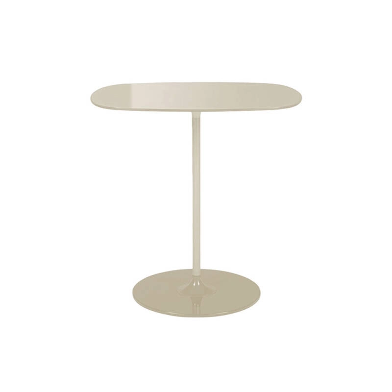 Les petites tables Thierry, dessinées par Piero Lissoni pour la marque Kartell, sont composées d'un plateau en verre et d'un pied central en métal coloré. Les finitions laquées ultra brillantes des tables Thierry, ainsi que les associations de couleurs utilisées leur donnent énormément de caractère. La beauté de ces petites tables réside dans leur apparence précieuse. La collection Thierry Kartell se décline en trois hauteurs avec des plateaux de formes différentes, ce qui permet d'associer plusieurs modèles dans des combinaisons originales.